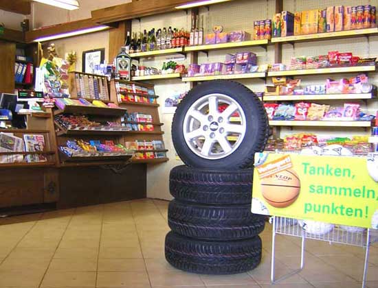 Auf über 50 m² Fläche erhalten Sie nicht nur Öl und Autozubehör, sondern auch viele Dinge für zwischendurch. Oder wenn es einfach mal wieder zu spät für den Einkauf geworden ist.
